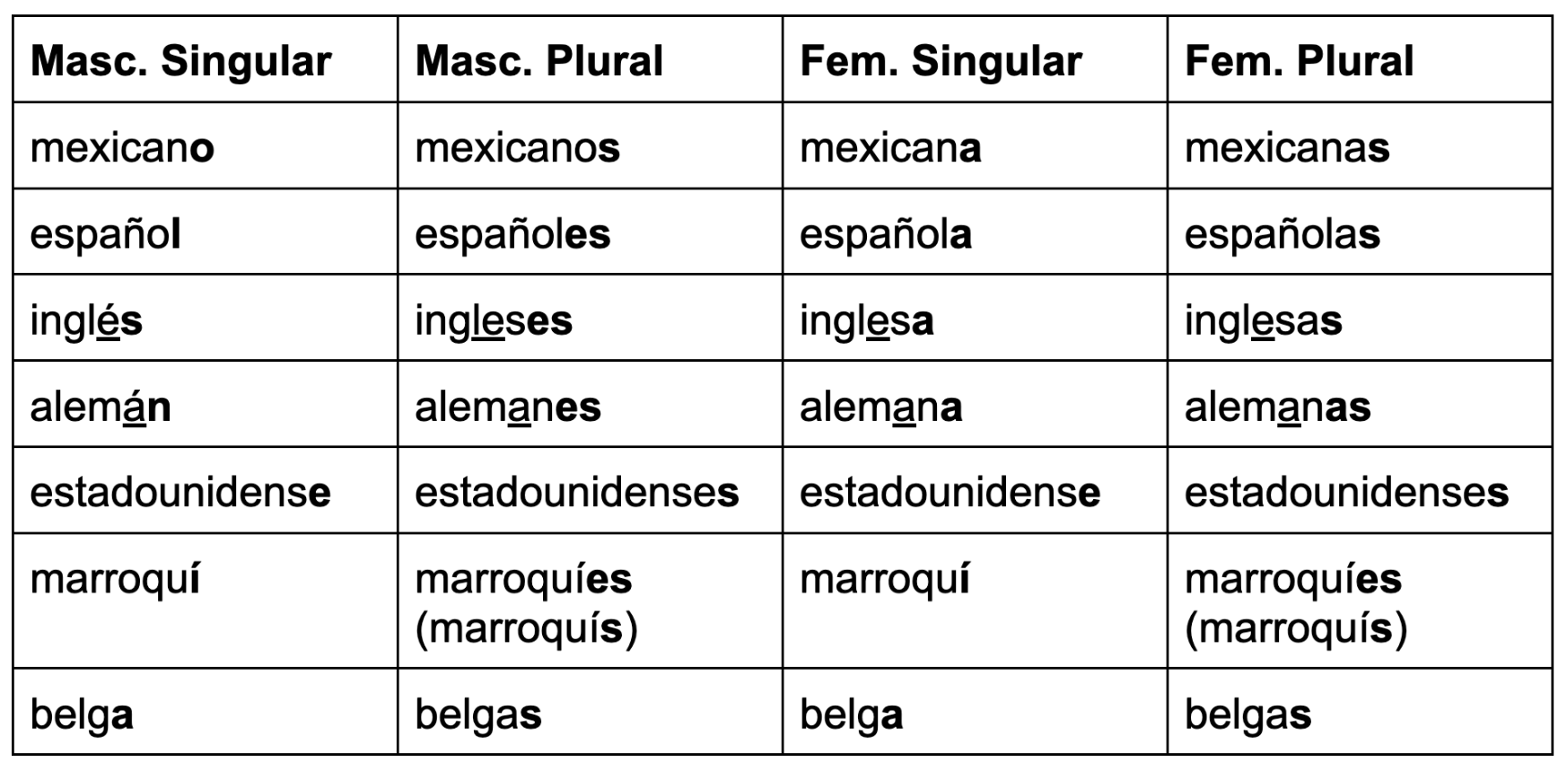 Las nacionalidades: concordancia de género y número