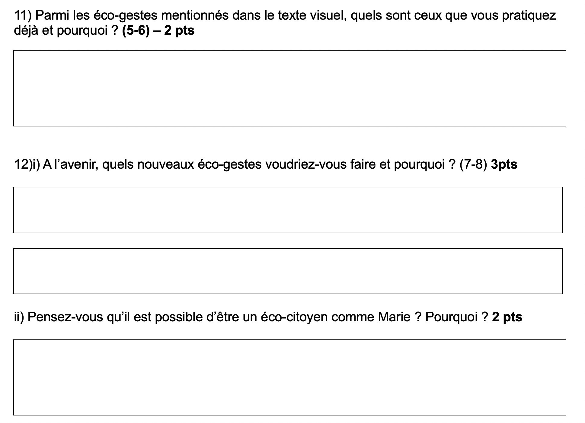 4) i) Définissez le terme éco-geste : (7-8) 1 pt
