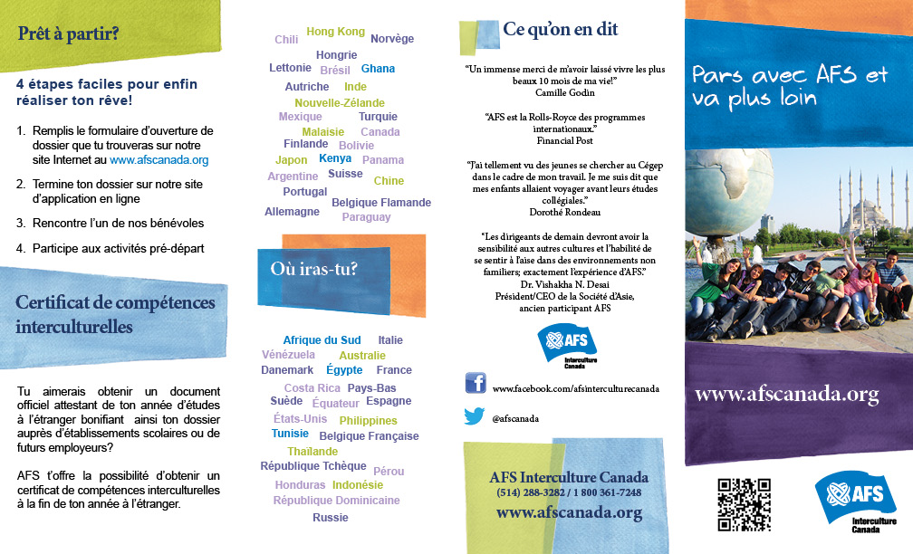 Le nom de l’association, de l’institution qui offre le service ou est en charge de l’organisation de l’événement doit aussi figurer sur la brochure.