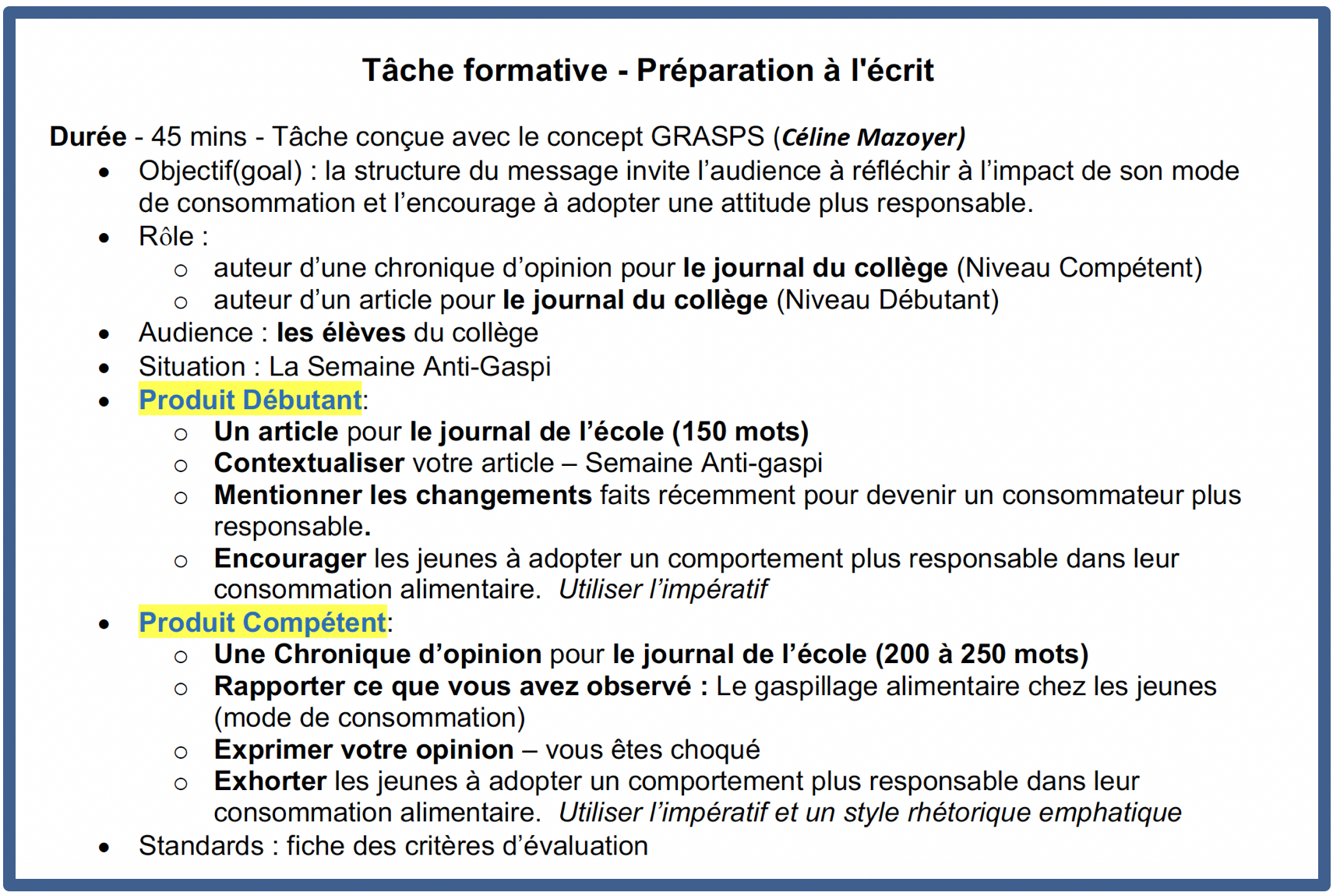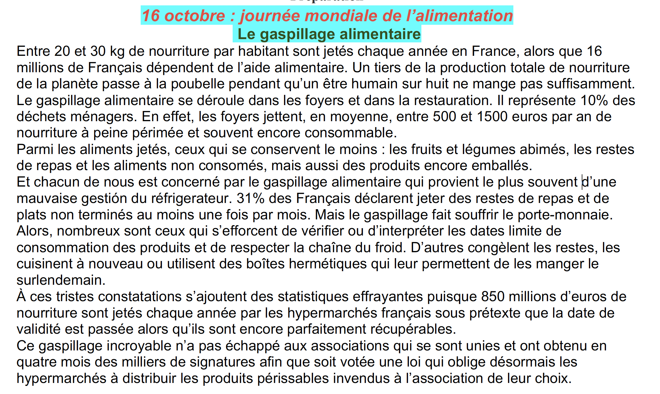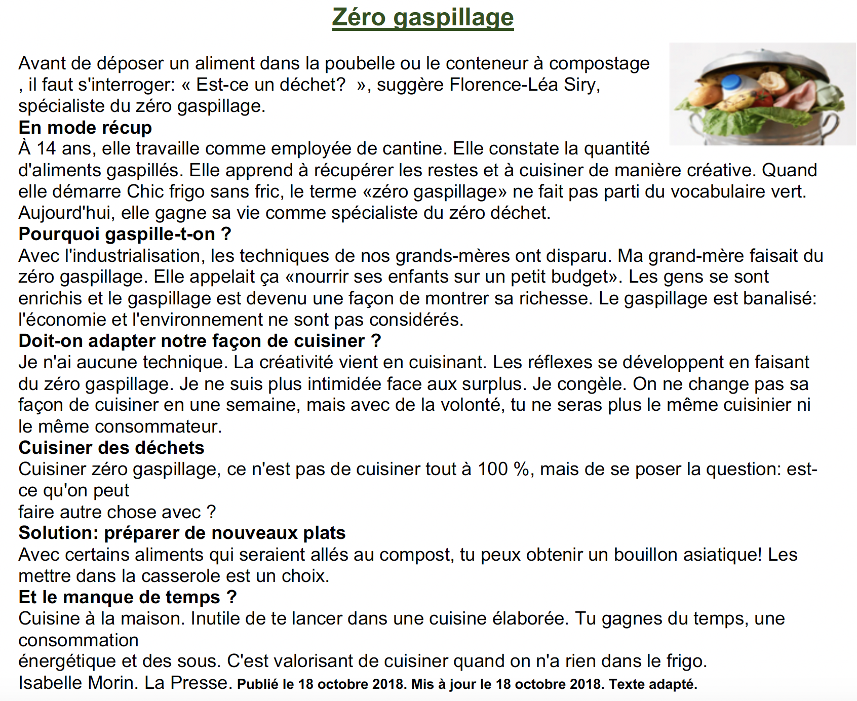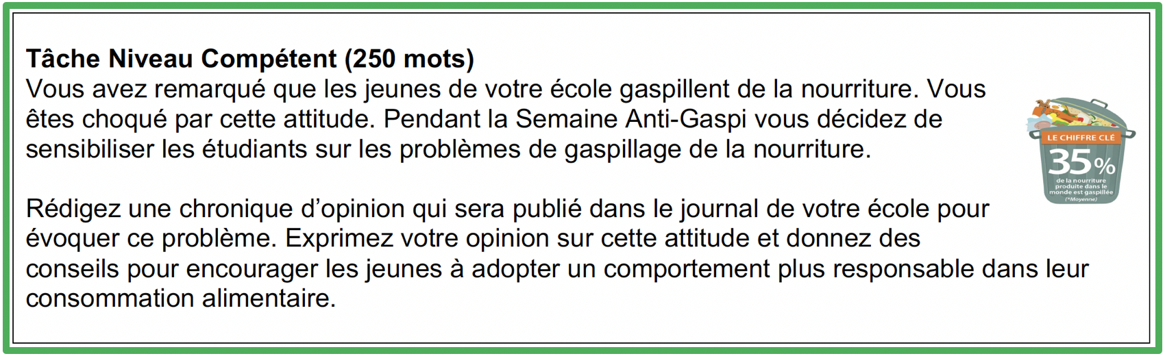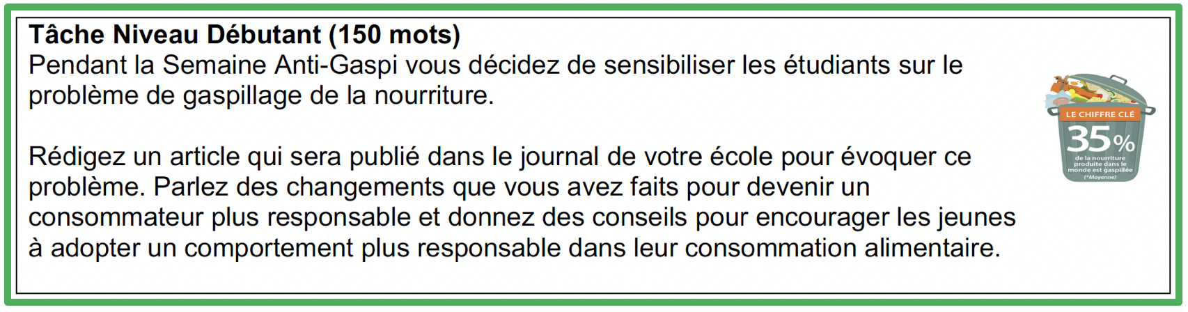 Critère D Expression Écrite - La semaine anti-gaspi