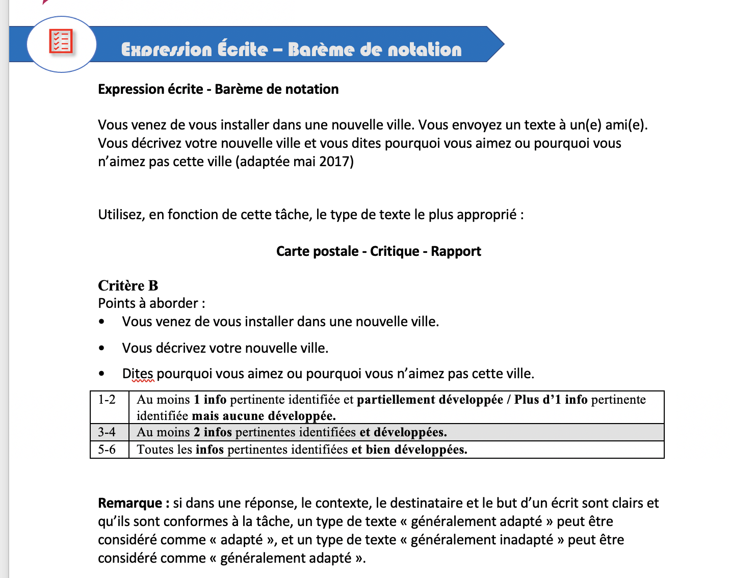 Vous venez de vous installer dans une nouvelle ville. Vous envoyez un texte à un(e) ami(e). Vous décrivez votre nouvelle ville et vous dites pourquoi vous aimez ou pourquoi vous n’aimez pas cette ville.