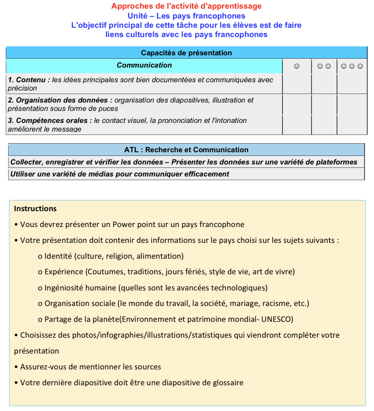 donner aux élèves l'occasion de démontrer leur connaissance et expérience et doit contenir suffisamment d'éléments visuels pour permettre la description d'une scène ou d'une situation