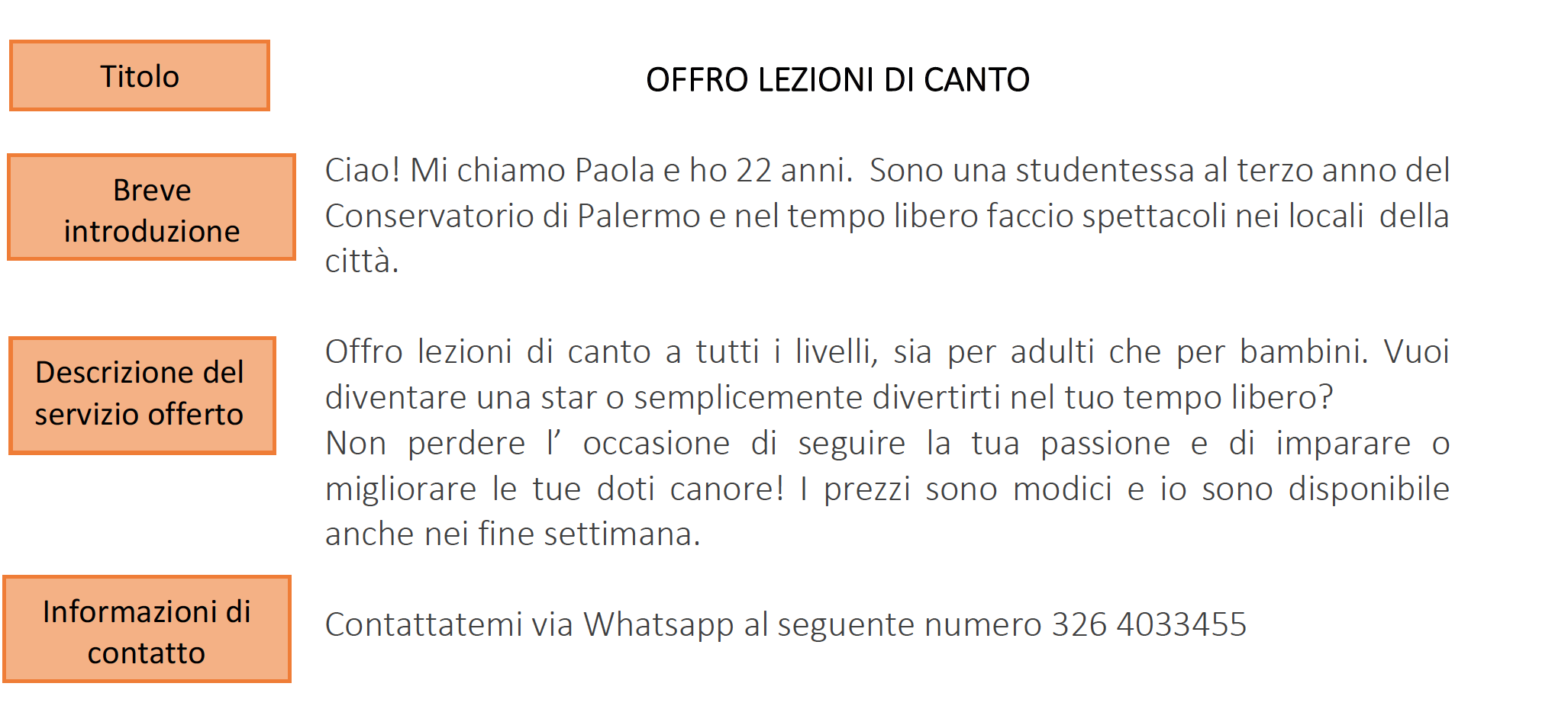 · Descrizione degli articoli che si vendono/degli oggetti che si cercano/ dell’ evento che si pubblicizza